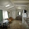 Double bed in bedroom & double bunks in main room - Kitchen with cooktop & microwave